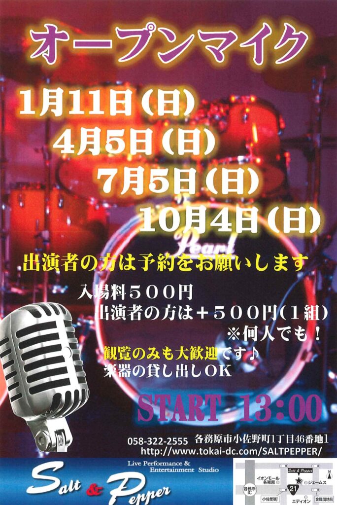 年4回(新春・春・夏・秋)のSalt&Peppperオープンマイクを開催しています!!